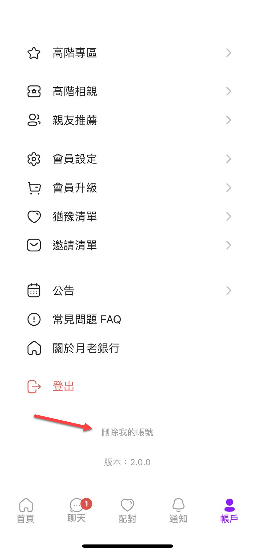 請從 帳戶 的最下方就可以看到 刪除我的帳戶,點選後再次點選 確定刪除我的帳號 即可,點選之後畫面會出現預計刪除時間,在時間內都可以取消刪除喔!