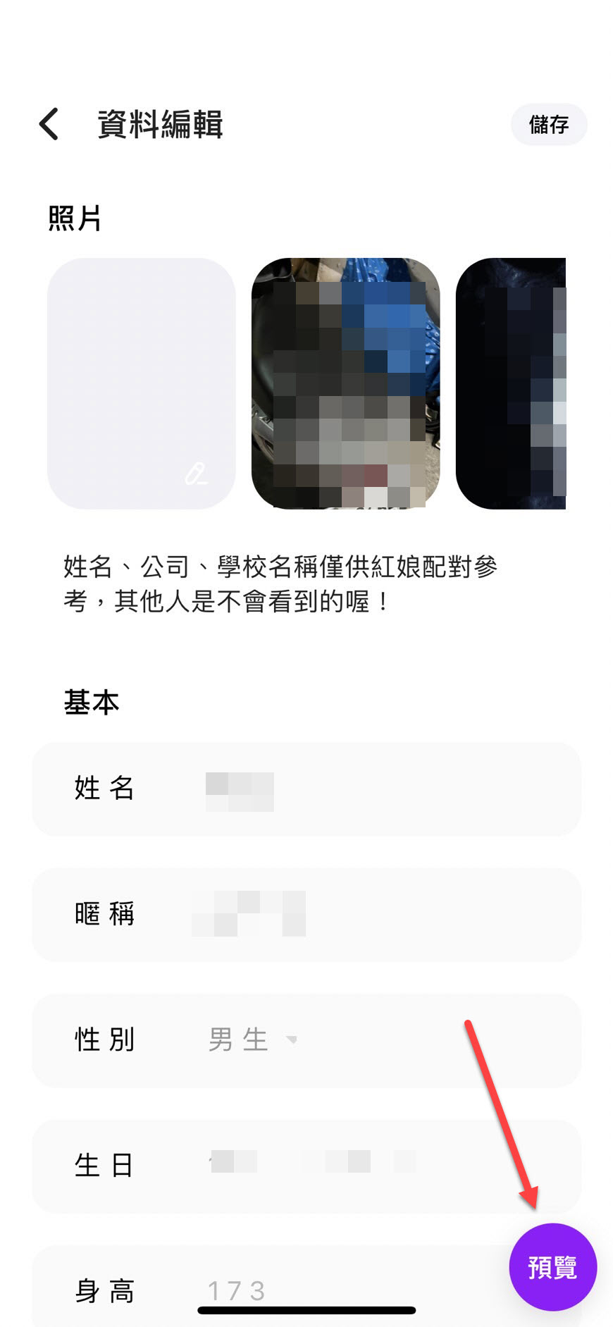 可以透過預覽功能來確認你的資料呈現的樣子,請透過 App 帳戶 -> 個人資料 -> 右下角的預覽鍵就可以囉。